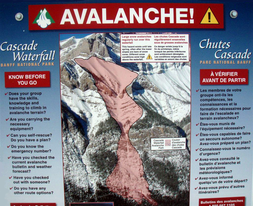 Parks Canada's new Safety Bulletin System outlining the dangers of the Cascade Falls Drainage